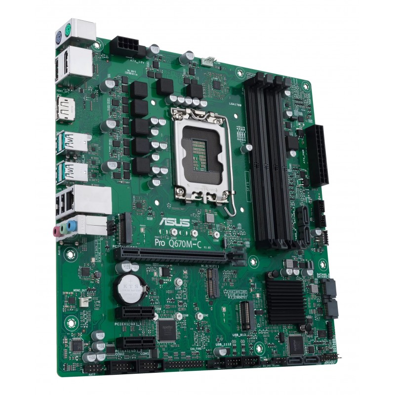 ASUS PRO Q670M-C-CSM. Fabricant de processeur: Intel, Socket de processeur (réceptable de processeur): LGA 1700, Processeurs compatibles: Intel® Celeron®, Intel® Core™ i3, Intel® Core™ i5, Intel® Core™ i7, Intel® Core™ i9,.... Types de mémoire pris en charge: DDR5-SDRAM, Mémoire interne maximale: 192 Go, Type de support (slot): DIMM. Interfaces de lecteur de stockage prises en charge: M.2, SATA III, Types de lecteurs de stockage pris en charge: HDD & SSD, Niveaux RAID: 0, 1, 5, 10. Type d'interface Ethernet: Gigabit Ethernet. composant pour: PC, Elément de forme de carte mère: micro ATX, famille de composant de produits: Intel