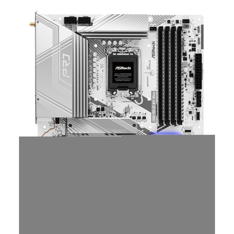 Asrock Z890 Pro RS WiFi White. Fabricant de processeur: Intel, Socket de processeur (réceptable de processeur): LGA 1851 (Socket V1), Processeurs compatibles: Intel Core Ultra (Series 2). Types de mémoire pris en charge: DDR5-SDRAM, Mémoire interne maximale: 256 Go, Type de support (slot): DIMM. Interfaces de lecteur de stockage prises en charge: M.2, SATA III, Types de lecteurs de stockage pris en charge: HDD & SSD, Niveaux RAID: 0, 1, 5, 10. Type d'interface Ethernet: 2.5 Gigabit Ethernet, Contrôleur de réseau local (LAN): Dragon RTL8125BG, Norme Wi-Fi: Wi-Fi 6E (802.11ax). composant pour: PC, Elément de forme de carte mère: ATX, famille de composant de produits: Intel