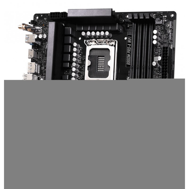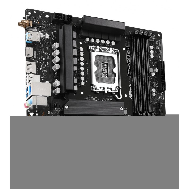 Asrock B860M Pro-A WiFi. Fabricant de processeur: Intel, Socket de processeur (réceptable de processeur): LGA 1851 (Socket V1). Types de mémoire pris en charge: DDR5-SDRAM, Mémoire interne maximale: 256 Go, Type de support (slot): DIMM. Interfaces de lecteur de stockage prises en charge: M.2, SATA III, Types de lecteurs de stockage pris en charge: HDD & SSD, Niveaux RAID: 0, 5, 10. Type d'interface Ethernet: 2.5 Gigabit Ethernet, Contrôleur de réseau local (LAN): Dragon RTL8125BG, Norme Wi-Fi: Wi-Fi 6E (802.11ax). composant pour: PC, Elément de forme de carte mère: micro ATX, famille de composant de produits: Intel