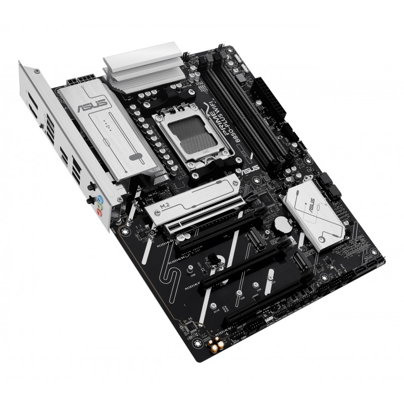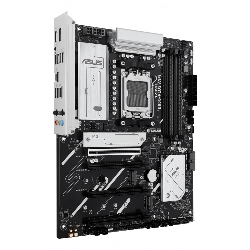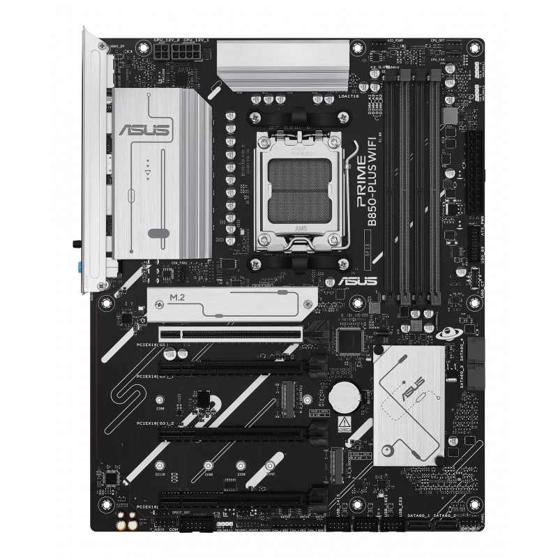 ASUS PRIME B850-PLUS WIFI. Fabricant de processeur: AMD, Socket de processeur (réceptable de processeur): Emplacement AM5, Processeurs compatibles: AMD Ryzen 7000 Series, AMD Ryzen 8000 Series, AMD Ryzen 9000 Series. Types de mémoire pris en charge: DDR5-SDRAM, Mémoire interne maximale: 256 Go, Type de support (slot): DIMM. Interfaces de lecteur de stockage prises en charge: M.2, SATA III, Types de lecteurs de stockage pris en charge: HDD & SSD, Niveaux RAID: 0, 1, 5, 10. Type d'interface Ethernet: 2.5 Gigabit Ethernet, Norme Wi-Fi: Wi-Fi 6E (802.11ax). composant pour: PC, Elément de forme de carte mère: ATX, famille de composant de produits: AMD