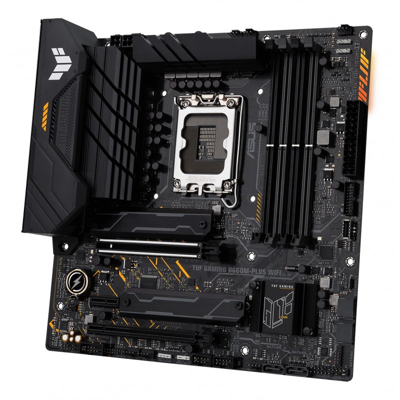 ASUS TUF GAMING B660M-PLUS WIFI. Fabricant de processeur: Intel, Socket de processeur (réceptable de processeur): LGA 1700, Processeurs compatibles: Intel® Celeron®, Intel® Core™ i3, Intel® Core™ i5, Intel® Core™ i7, Intel® Core™ i9,.... Types de mémoire pris en charge: DDR5-SDRAM, Mémoire interne maximale: 128 Go, Type de support (slot): DIMM. Interfaces de lecteur de stockage prises en charge: M.2, PCI Express 4.0, SATA III, Types de lecteurs de stockage pris en charge: HDD & SSD, Niveaux RAID: 0, 1, 5, 10. Type d'interface Ethernet: 2.5 Gigabit Ethernet, Norme Wi-Fi: Wi-Fi 6 (802.11ax), Standards wifi: 802.11a, 802.11b, 802.11g, Wi-Fi 4 (802.11n), Wi-Fi 5 (802.11ac), Wi-Fi 6 (802.11ax). composant pour: PC, Elément de forme de carte mère: micro ATX, famille de composant de produits: Intel
