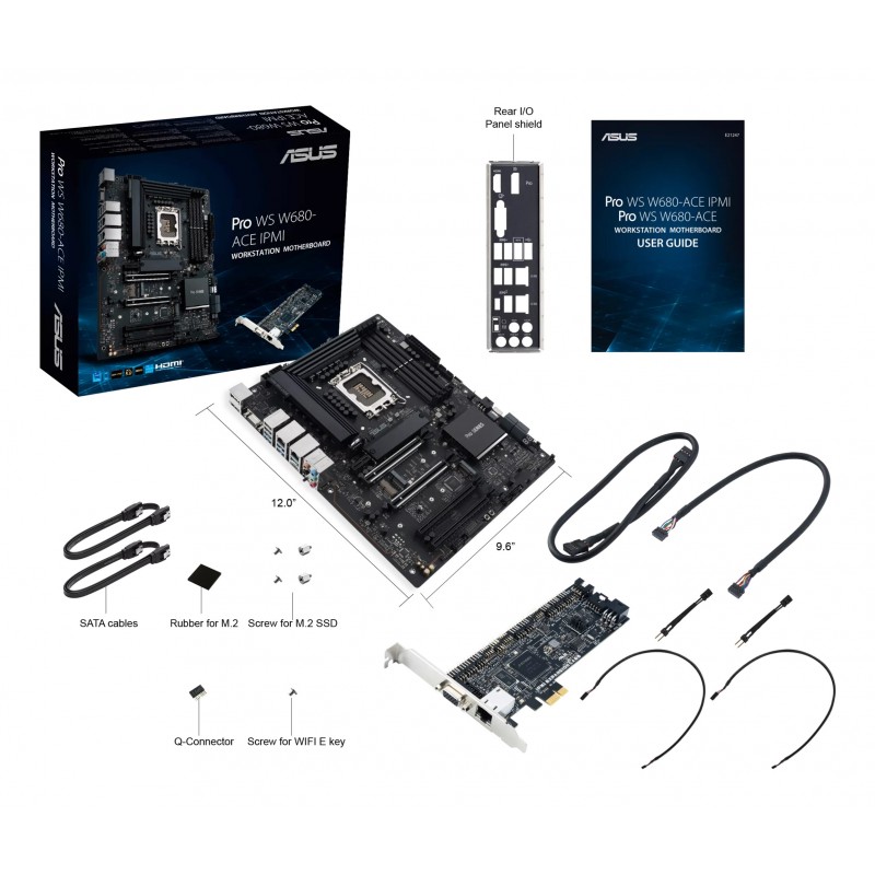 ASUS PRO WS W680-ACE IPMI. Fabricant de processeur: Intel, Socket de processeur (réceptable de processeur): LGA 1700, Processeurs compatibles: Intel® Celeron®, Intel® Core™ i5, Intel® Core™ i7, Intel® Core™ i9, Intel® Pentium® Gold. Types de mémoire pris en charge: DDR5-SDRAM, Mémoire interne maximale: 128 Go, Type de support (slot): DIMM. Interfaces de lecteur de stockage prises en charge: M.2, NVMe, SATA III, Types de lecteurs de stockage pris en charge: HDD & SSD, Niveaux RAID: 0, 1, 5, 10. Type d'interface Ethernet: 2.5 Gigabit Ethernet. composant pour: PC, Elément de forme de carte mère: ATX, famille de composant de produits: Intel