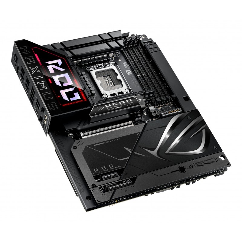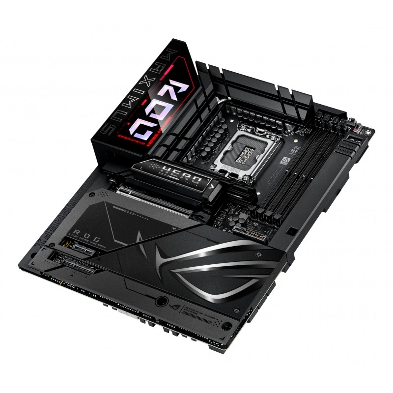 ASUS ROG MAXIMUS Z890 HERO BTF. Fabricant de processeur: Intel, Socket de processeur (réceptable de processeur): LGA 1851 (Socket V1), Processeurs compatibles: Intel Core Ultra (Series 2). Types de mémoire pris en charge: DDR5-SDRAM, Mémoire interne maximale: 256 Go, Type de support (slot): DIMM. Interfaces de lecteur de stockage prises en charge: M.2, SATA III, Types de lecteurs de stockage pris en charge: HDD & SSD, Niveaux RAID: 0, 1, 5, 10. Type d'interface Ethernet: 2.5 Gigabit Ethernet, 5 Gigabit Ethernet, Norme Wi-Fi: Wi-Fi 7 (802.11be), Standards wifi: Wi-Fi 7 (802.11be). composant pour: PC, Elément de forme de carte mère: ATX, famille de composant de produits: Intel