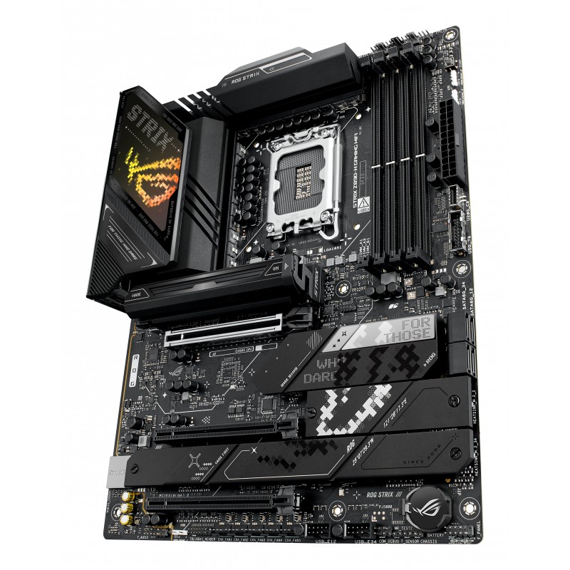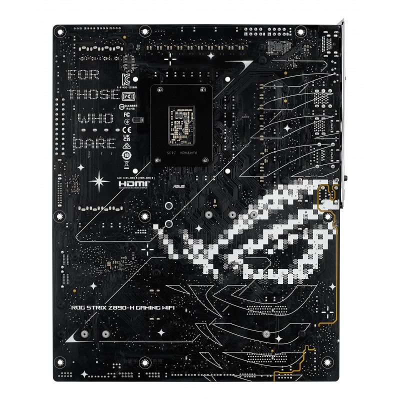 ASUS ROG STRIX Z890-H GAMING WIFI. Fabricant de processeur: Intel, Socket de processeur (réceptable de processeur): LGA 1851 (Socket V1), Processeurs compatibles: Intel Core Ultra (Series 2). Types de mémoire pris en charge: DDR5-SDRAM, Mémoire interne maximale: 256 Go, Type de support (slot): DIMM. Interfaces de lecteur de stockage prises en charge: M.2, SATA III, Types de lecteurs de stockage pris en charge: HDD & SSD, Niveaux RAID: 0, 1, 5, 10. Type d'interface Ethernet: 5 Gigabit Ethernet, Norme Wi-Fi: Wi-Fi 7 (802.11be), Standards wifi: Wi-Fi 7 (802.11be). composant pour: PC, Elément de forme de carte mère: ATX, famille de composant de produits: Intel