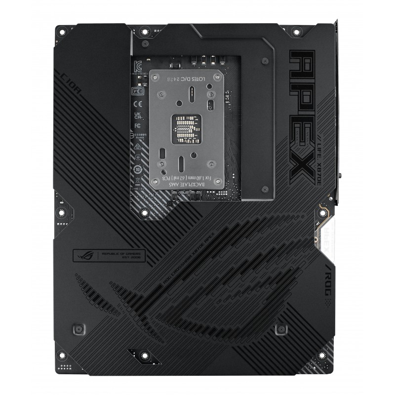 ASUS ROG CROSSHAIR X870E APEX. Fabricant de processeur: AMD, Socket de processeur (réceptable de processeur): Emplacement AM5, Processeurs compatibles: AMD Ryzen 7000 Series, AMD Ryzen 8000 Series, AMD Ryzen 9000 Series. Types de mémoire pris en charge: DDR5-SDRAM, Mémoire interne maximale: 128 Go, Type de support (slot): DIMM. Interfaces de lecteur de stockage prises en charge: M.2, SATA III, Types de lecteurs de stockage pris en charge: HDD & SSD, Niveaux RAID: 0, 1, 5, 10. Type d'interface Ethernet: 5 Gigabit Ethernet, Norme Wi-Fi: Wi-Fi 7 (802.11be), Standards wifi: Wi-Fi 7 (802.11be). composant pour: PC, Elément de forme de carte mère: ATX, famille de composant de produits: AMD