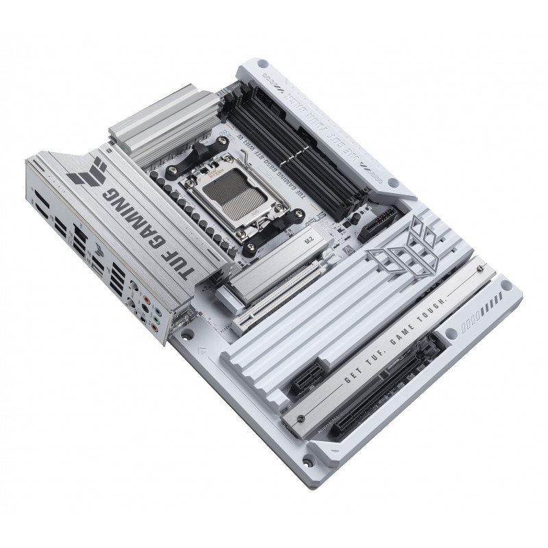 ASUS TUF GAMING B850-BTF WIFI W. Fabricant de processeur: AMD, Socket de processeur (réceptable de processeur): Emplacement AM5, Processeurs compatibles: AMD Ryzen 7000 Series, AMD Ryzen 8000 Series, AMD Ryzen 9000 Series. Types de mémoire pris en charge: DDR5-SDRAM, Mémoire interne maximale: 256 Go, Type de support (slot): DIMM. Interfaces de lecteur de stockage prises en charge: M.2, SATA III, Types de lecteurs de stockage pris en charge: HDD & SSD, Niveaux RAID: 0, 1, 5, 10. Type d'interface Ethernet: 2.5 Gigabit Ethernet, Norme Wi-Fi: Wi-Fi 7 (802.11be), Standards wifi: Wi-Fi 7 (802.11be). composant pour: PC, Elément de forme de carte mère: ATX, famille de composant de produits: AMD