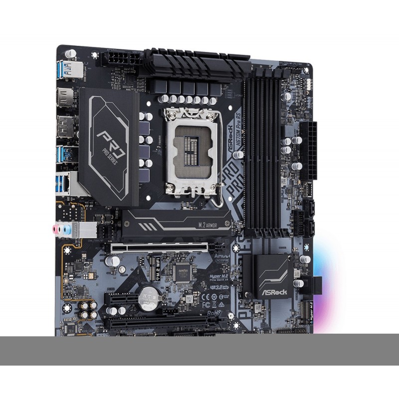 Asrock H670M Pro RS. Fabricant de processeur: Intel, Socket de processeur (réceptable de processeur): LGA 1700, Processeurs compatibles: Intel® Celeron®, Intel® Core™ i3, Intel® Core™ i5, Intel® Core™ i7, Intel® Core™ i9, Intel® Pentium®. Types de mémoire pris en charge: DDR4-SDRAM, Mémoire interne maximale: 128 Go, Type de support (slot): DIMM. Interfaces de lecteur de stockage prises en charge: M.2, SATA III, Types de lecteurs de stockage pris en charge: HDD & SSD, Niveaux RAID: 0, 1, 5, 10. Résolution maximale: 7680 x 4320 pixels. Type d'interface Ethernet: Gigabit Ethernet, Contrôleur de réseau local (LAN): Intel® I219-V
