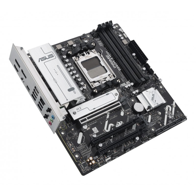 ASUS PRIME B840M-A WIFI. Fabricant de processeur: AMD, Socket de processeur (réceptable de processeur): Emplacement AM5, Processeurs compatibles: AMD Ryzen 7000 Series, AMD Ryzen 8000 Series, AMD Ryzen 9000 Series. Types de mémoire pris en charge: DDR5-SDRAM, Mémoire interne maximale: 192 Go, Type de support (slot): DIMM. Interfaces de lecteur de stockage prises en charge: M.2, SATA III, Types de lecteurs de stockage pris en charge: HDD & SSD, Niveaux RAID: 0, 1, 5, 10. Type d'interface Ethernet: 2.5 Gigabit Ethernet, Norme Wi-Fi: Wi-Fi 6E (802.11ax), Standards wifi: Wi-Fi 6E (802.11ax). composant pour: PC, Elément de forme de carte mère: micro ATX, famille de composant de produits: AMD