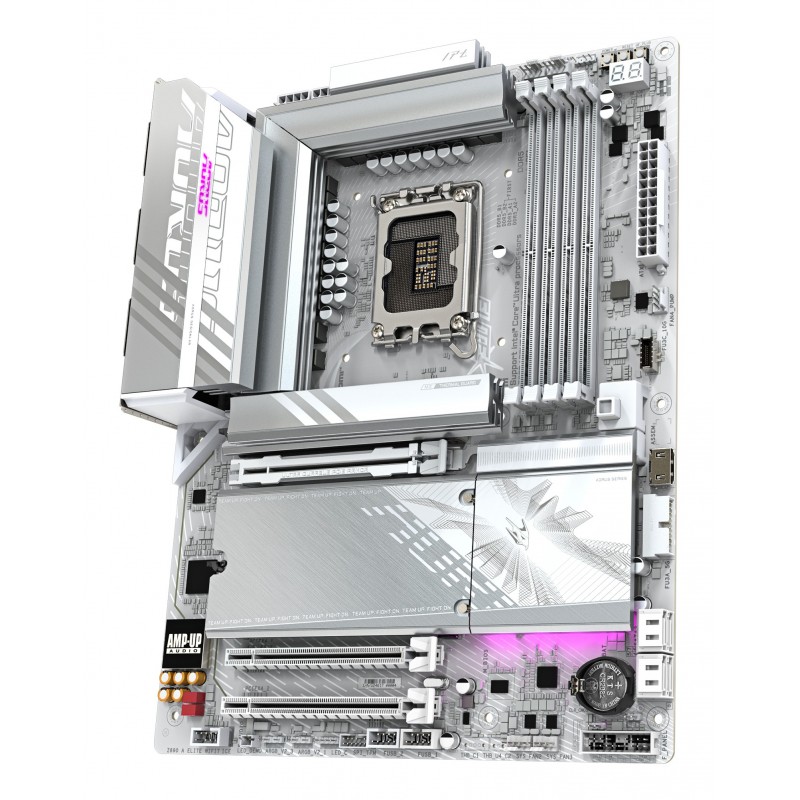 GIGABYTE Carte mère Z890 AORUS ELITE WIFI7 ICE - Prend en charge les processeurs Intel Core Ultra (Série 2), VRM à 16+1+2 phases, jusqu'à 8800MHz DDR5 (OC), 1xPCIe 5.0 + 3xPCIe 4.0, Wi-Fi 7, LAN 2.5GbE, Thunderbolt 4. Fabricant de processeur: Intel, Socket de processeur (réceptable de processeur): LGA 1851 (Socket V1), Processeurs compatibles: Intel Core Ultra (Series 2). Types de mémoire pris en charge: DDR5-SDRAM, Mémoire interne maximale: 256 Go, Type de support (slot): DIMM. Interfaces de lecteur de stockage prises en charge: M.2, SATA III, Types de lecteurs de stockage pris en charge: HDD & SSD, Niveaux RAID: 0, 1, 5, 10. Type d'interface Ethernet: 2.5 Gigabit Ethernet, Norme Wi-Fi: Wi-Fi 7 (802.11be), Standards wifi: Wi-Fi 7 (802.11be). composant pour: PC, Elément de forme de carte mère: ATX, famille de composant de produits: Intel