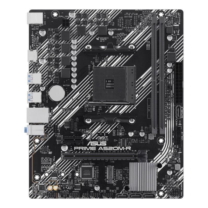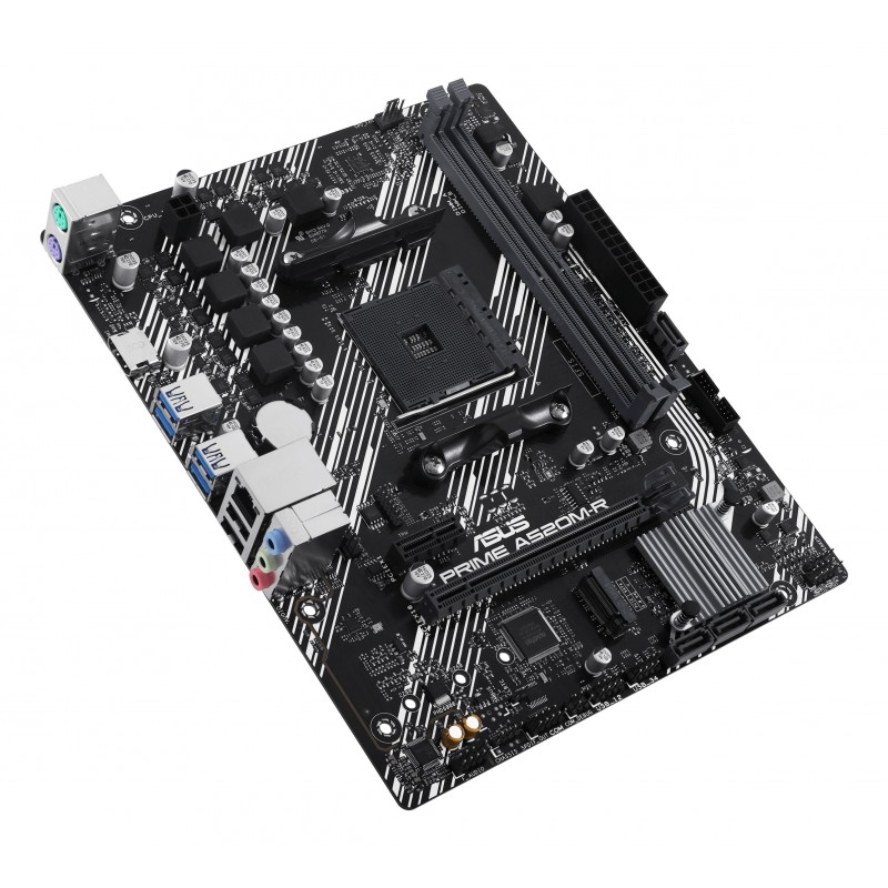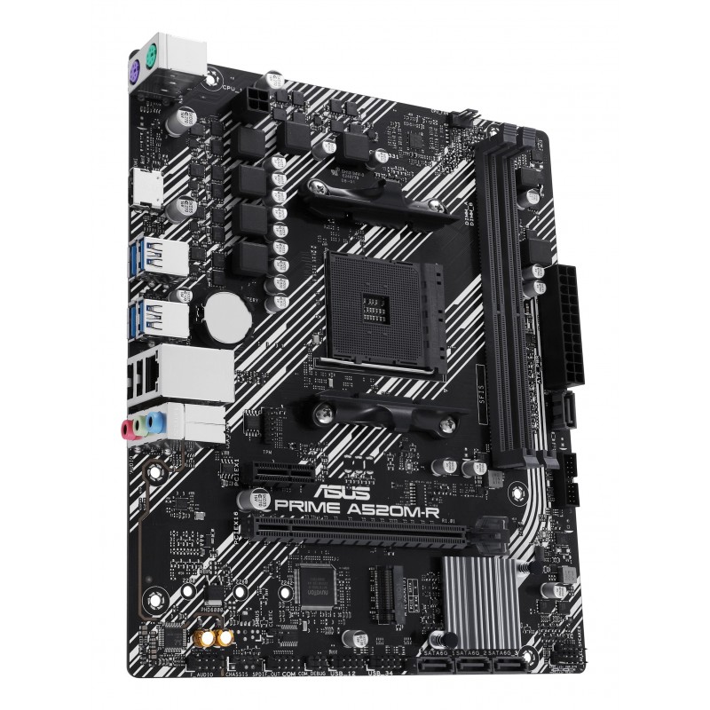 ASUS PRIME A520M-R. Fabricant de processeur: AMD, Socket de processeur (réceptable de processeur): Emplacement AM4, Processeurs compatibles: AMD Ryzen 3000 Series, AMD Ryzen 5000 Series. Types de mémoire pris en charge: DDR5-SDRAM, Mémoire interne maximale: 64 Go, Type de support (slot): DIMM. Interfaces de lecteur de stockage prises en charge: M.2, SATA III, Types de lecteurs de stockage pris en charge: HDD & SSD, Niveaux RAID: 0, 1, 10. Type d'interface Ethernet: Gigabit Ethernet. composant pour: PC, Elément de forme de carte mère: micro ATX, famille de composant de produits: AMD