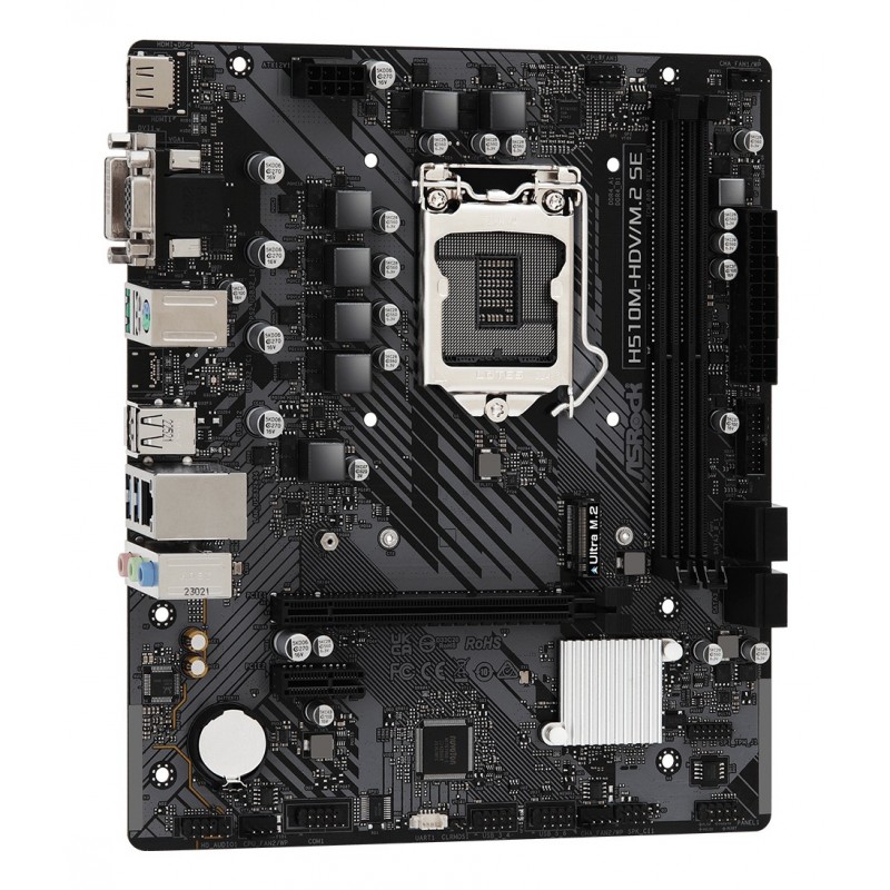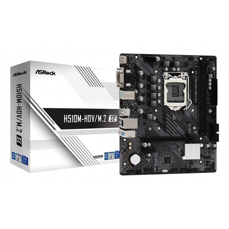 Asrock H510M-HDV/M.2 SE. Fabricant de processeur: Intel, Socket de processeur (réceptable de processeur): LGA 1200 (Socket H5). Types de mémoire pris en charge: DDR4-SDRAM, Mémoire interne maximale: 64 Go, Type de support (slot): DIMM. Interfaces de lecteur de stockage prises en charge: PCI Express 3.0, SATA III, Types de lecteurs de stockage pris en charge: HDD & SSD, Niveaux RAID: 0, 1, 5, 10. Version HDMI: 1.4/2.0, Connecteur USB: USB Type-A. Type d'interface Ethernet: Gigabit Ethernet, Contrôleur de réseau local (LAN): Realtek 8111H