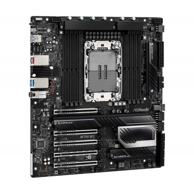 Asrock W790 WS R2.0. Fabricant de processeur: Intel, Socket de processeur (réceptable de processeur): LGA 4677 (Socket E), Processeurs compatibles: Intel® Xeon® W. Types de mémoire pris en charge: DDR5-SDRAM, Mémoire interne maximale: 2,05 To, Type de support (slot): DIMM. Interfaces de lecteur de stockage prises en charge: M.2, SATA III, Types de lecteurs de stockage pris en charge: HDD & SSD, Niveaux RAID: 0, 1, 5, 10. Type d'interface Ethernet: 2.5 Gigabit Ethernet, 5 Gigabit Ethernet, 10 Gigabit Ethernet, Fast Ethernet, Gigabit Ethernet. composant pour: PC, Elément de forme de carte mère: ATX étendu, famille de composant de produits: Intel