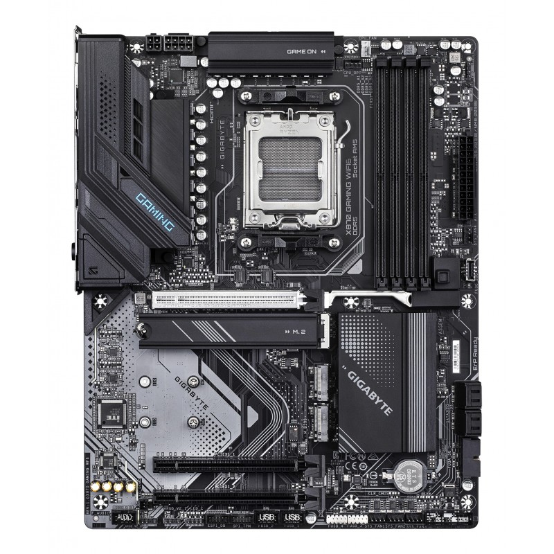GIGABYTE X870 GAMING WIFI6 Carte Mère - Prend en charge les processeurs AMD Ryzen 9000, 8+2+2 phases VRM, jusqu'à 8000MHz DDR5 (OC), 1xPCIe 5.0 + 2xPCIe 4.0, Wi-Fi 6, LAN 2,5GbE, USB 4. Fabricant de processeur: AMD, Socket de processeur (réceptable de processeur): Emplacement AM5, Processeurs compatibles: AMD Ryzen™ 7. Types de mémoire pris en charge: DDR5-SDRAM, Mémoire interne maximale: 256 Go, Type de support (slot): DIMM. Interfaces de lecteur de stockage prises en charge: M.2, SATA III, Types de lecteurs de stockage pris en charge: HDD & SSD, Niveaux RAID: 0, 1, 10. Type d'interface Ethernet: 2.5 Gigabit Ethernet, Norme Wi-Fi: Wi-Fi 6 (802.11ax), Standards wifi: 802.11b, 802.11g, Wi-Fi 4 (802.11n), Wi-Fi 5 (802.11ac), Wi-Fi 6 (802.11ax), Wi-Fi 7 (802.11be). composant pour: PC, Elément de forme de carte mère: ATX, famille de composant de produits: AMD
