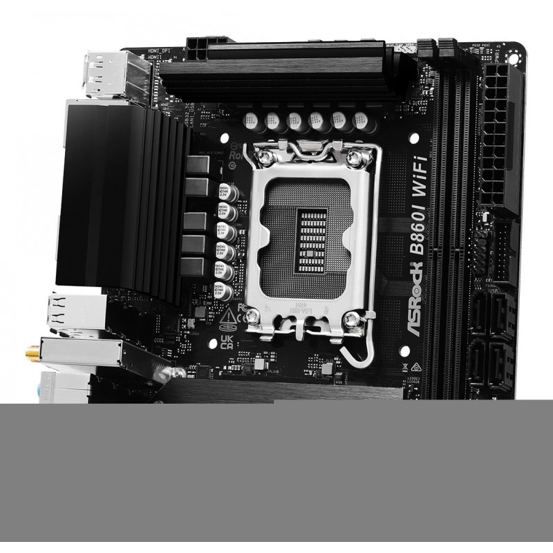 Asrock B860I WiFi. Fabricant de processeur: Intel, Socket de processeur (réceptable de processeur): LGA 1851 (Socket V1). Types de mémoire pris en charge: DDR5-SDRAM, Mémoire interne maximale: 128 Go, Type de support (slot): DIMM. Interfaces de lecteur de stockage prises en charge: M.2, SATA III, Niveaux RAID: 0, 1, 5, 10. Famille d'adaptateur graphique: Intel. Type d'interface Ethernet: 2.5 Gigabit Ethernet, Contrôleur de réseau local (LAN): Dragon RTL8125BG, Norme Wi-Fi: Wi-Fi 6E (802.11ax)