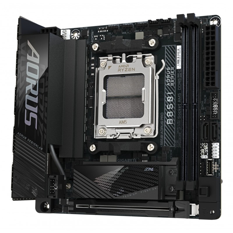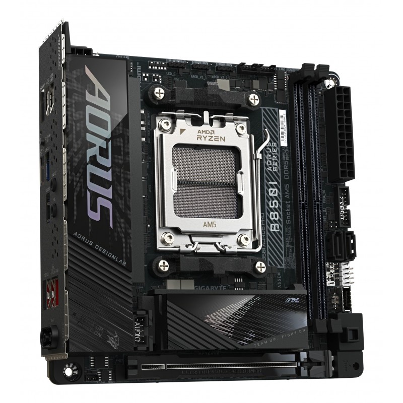 GIGABYTE B850I AORUS PRO Carte Mère - Processeurs AMD Ryzen Série 9000, VRM numérique 8+2+1 phases, jusqu'à 8400MHz DDR5 (OC), 1xPCIe 5.0 + 1xPCIe 4.0 M.2, 2.5LAN, WIFI 7, USB 3.2 Gen 2. Fabricant de processeur: AMD, Socket de processeur (réceptable de processeur): Emplacement AM5, Processeurs compatibles: AMD Ryzen 7000 Series, AMD Ryzen 8000 Series, AMD Ryzen 9000 Series. Types de mémoire pris en charge: DDR5-SDRAM, Mémoire interne maximale: 128 Go, Type de support (slot): DIMM. Interfaces de lecteur de stockage prises en charge: M.2, SATA III, Types de lecteurs de stockage pris en charge: HDD & SSD, Niveaux RAID: 0, 1, 10. Résolution maximale: 4096 x 2160 pixels. Type d'interface Ethernet: Gigabit Ethernet, Norme Wi-Fi: Wi-Fi 7 (802.11be), Standards wifi: 802.11a, 802.11b, 802.11g, Wi-Fi 4 (802.11n), Wi-Fi 5 (802.11ac), Wi-Fi 6 (802.11ax), Wi-Fi 6E...