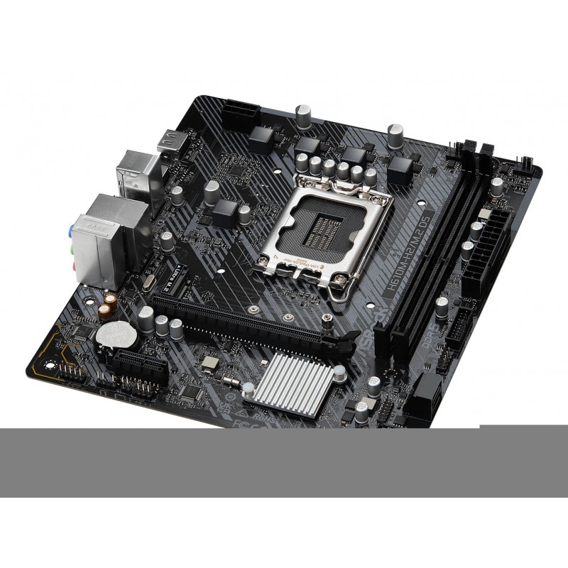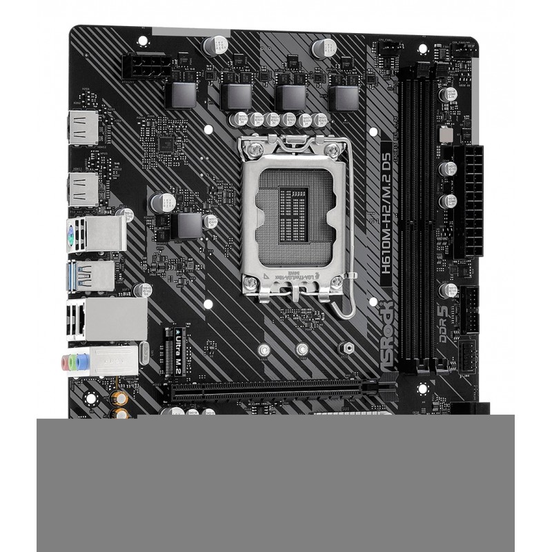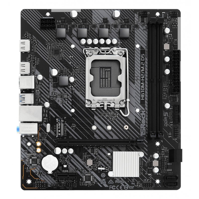 Asrock H610M-H2/M.2 D5. Fabricant de processeur: Intel, Socket de processeur (réceptable de processeur): LGA 1700. Types de mémoire pris en charge: DDR5-SDRAM, Mémoire interne maximale: 96 Go, Type de support (slot): DIMM. Interfaces de lecteur de stockage prises en charge: M.2, SATA III. Type d'interface Ethernet: Gigabit Ethernet, Contrôleur de réseau local (LAN): Realtek 8111H. composant pour: PC, Elément de forme de carte mère: micro ATX, famille de composant de produits: Intel