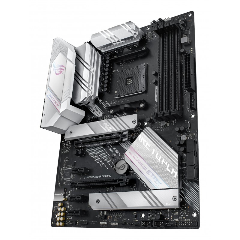 ASUS ROG STRIX B550-A GAMING. Fabricant de processeur: AMD, Socket de processeur (réceptable de processeur): Emplacement AM4, Processeurs compatibles: AMD Ryzen™ 3. Types de mémoire pris en charge: DDR4-SDRAM, Mémoire interne maximale: 128 Go, Type de support (slot): DIMM. Interfaces de lecteur de stockage prises en charge: PCI Express 3.0, Niveaux RAID: 0, 1, 10. Technologie de Traitement en parallèle: 2-Way CrossFireX. composant pour: PC, Elément de forme de carte mère: ATX, famille de composant de produits: AMD