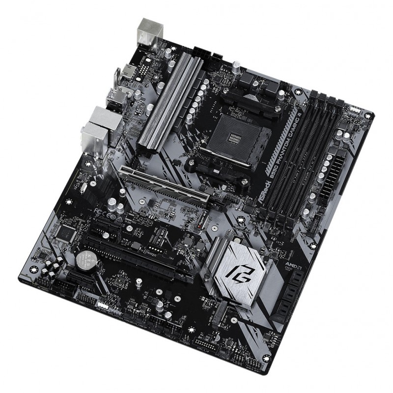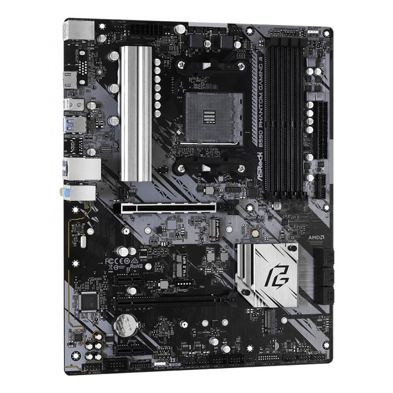 Asrock B550 Phantom Gaming 4. Fabricant de processeur: AMD, Socket de processeur (réceptable de processeur): Emplacement AM4, Processeurs compatibles: AMD Ryzen 3000 Series. Types de mémoire pris en charge: DDR4-SDRAM, Mémoire interne maximale: 128 Go, Type de support (slot): DIMM. Interfaces de lecteur de stockage prises en charge: M.2, SATA III, Niveaux RAID: 0, 1, 10. Type d'interface Ethernet: Gigabit Ethernet, Contrôleur de réseau local (LAN): Realtek RTL8111H. composant pour: PC, Elément de forme de carte mère: ATX, famille de composant de produits: AMD