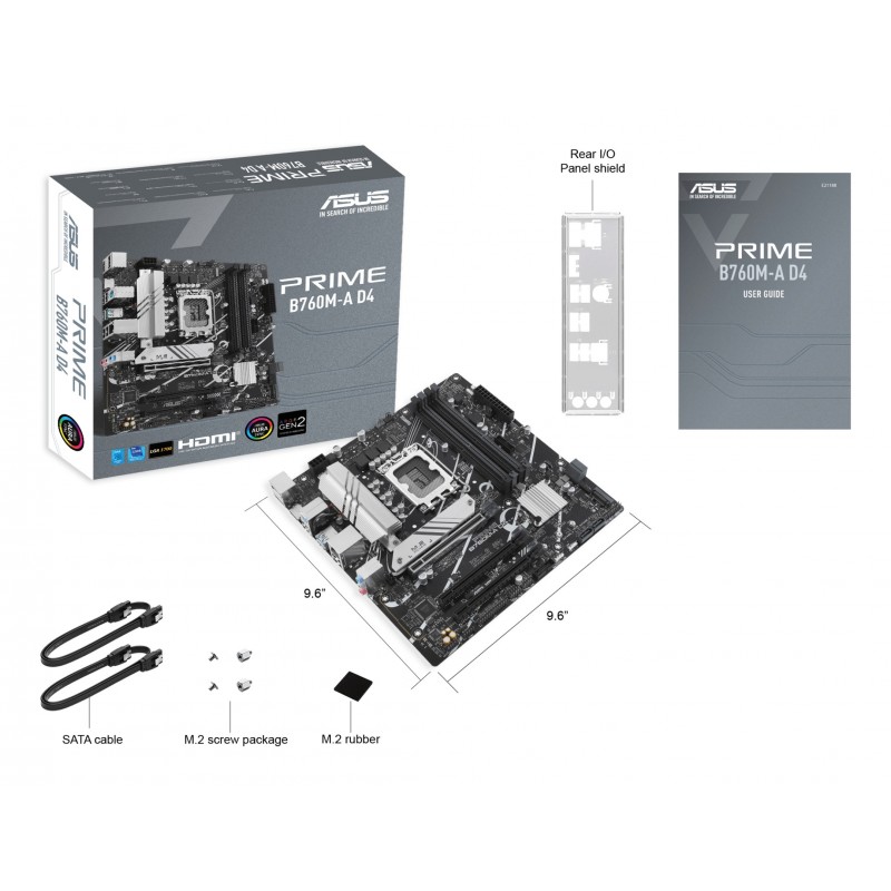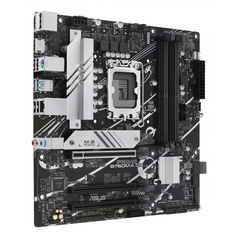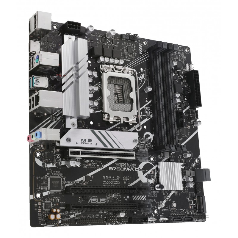 ASUS PRIME B760M-A D4-CSM. Fabricant de processeur: Intel, Socket de processeur (réceptable de processeur): LGA 1700, Processeurs compatibles: Intel® Celeron®, Intel® Pentium® Gold, Intel® Core™ i3, Intel® Core™ i5, Intel® Core™.... Types de mémoire pris en charge: DDR4-SDRAM, Mémoire interne maximale: 128 Go, Type de support (slot): DIMM. Interfaces de lecteur de stockage prises en charge: M.2, SATA III, Types de lecteurs de stockage pris en charge: HDD & SSD, Niveaux RAID: 0, 1, 5, 10. Type d'interface Ethernet: 2.5 Gigabit Ethernet. composant pour: PC, Elément de forme de carte mère: micro ATX, famille de composant de produits: Intel