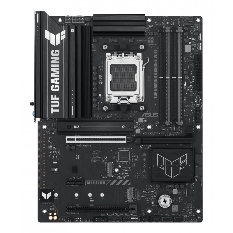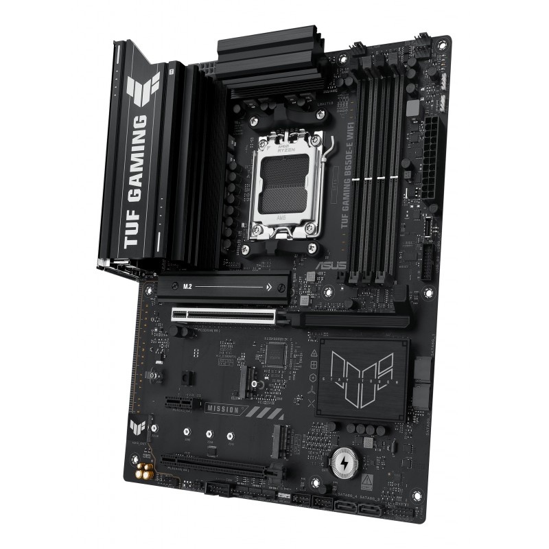 ASUS TUF GAMING B650E-E WIFI. Fabricant de processeur: AMD, Socket de processeur (réceptable de processeur): Emplacement AM5, Processeurs compatibles: AMD Ryzen 7000 Series, AMD Ryzen 8000 Series, AMD Ryzen 9000 Series. Types de mémoire pris en charge: DDR5-SDRAM, Mémoire interne maximale: 256 Go, Type de support (slot): DIMM. Interfaces de lecteur de stockage prises en charge: M.2, SATA III, Types de lecteurs de stockage pris en charge: HDD & SSD, Niveaux RAID: 0, 1, 5, 10. Type d'interface Ethernet: 2.5 Gigabit Ethernet, Norme Wi-Fi: Wi-Fi 6E (802.11ax), Standards wifi: Wi-Fi 6E (802.11ax). composant pour: PC, Elément de forme de carte mère: ATX, famille de composant de produits: AMD