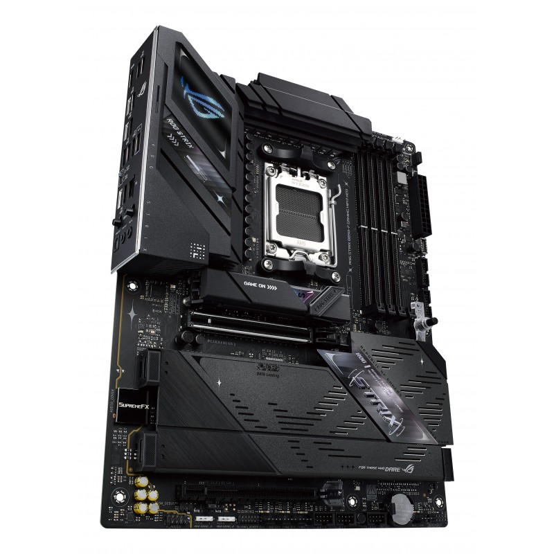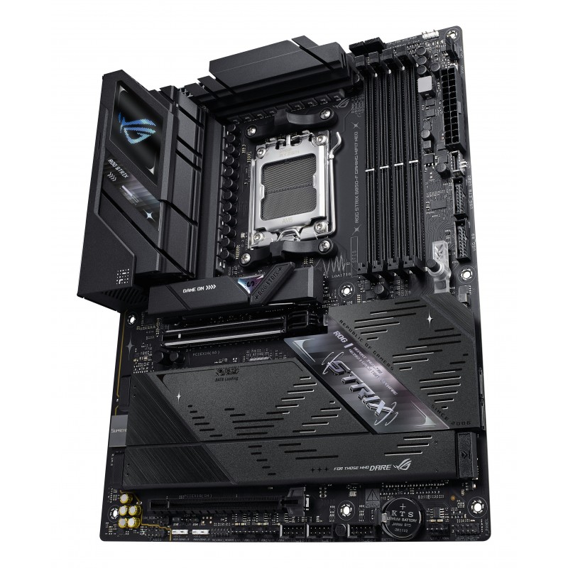 ASUS ROG STRIX B850-F GAMING WIFI7 NEO. Fabricant de processeur: AMD, Socket de processeur (réceptable de processeur): Emplacement AM5, Processeurs compatibles: AMD Ryzen 7000 Series, AMD Ryzen 8000 Series, AMD Ryzen 9000 Series. Types de mémoire pris en charge: DDR5-SDRAM, Mémoire interne maximale: 256 Go, Type de support (slot): DIMM. Interfaces de lecteur de stockage prises en charge: M.2, SATA III, Types de lecteurs de stockage pris en charge: HDD & SSD, Niveaux RAID: 0, 1, 5, 10. Type d'interface Ethernet: 2.5 Gigabit Ethernet, Norme Wi-Fi: Wi-Fi 7 (802.11be), Standards wifi: Wi-Fi 7 (802.11be). composant pour: PC, Elément de forme de carte mère: ATX, famille de composant de produits: AMD