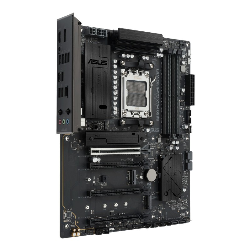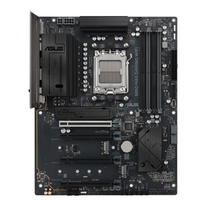 ASUS B850 MAX GAMING WIFI. Fabricant de processeur: AMD, Socket de processeur (réceptable de processeur): Emplacement AM5, Processeurs compatibles: AMD Ryzen 7000 Series, AMD Ryzen 8000 Series, AMD Ryzen 9000 Series. Types de mémoire pris en charge: DDR5-SDRAM, Mémoire interne maximale: 256 Go, Type de support (slot): DIMM. Interfaces de lecteur de stockage prises en charge: M.2, SATA III, Types de lecteurs de stockage pris en charge: HDD & SSD, Niveaux RAID: 0, 1, 5, 10. Résolution maximale: 7680 x 4320 pixels. Type d'interface Ethernet: 2.5 Gigabit Ethernet, Norme Wi-Fi: Wi-Fi 6E (802.11ax), Standards wifi: Wi-Fi 6E (802.11ax)
