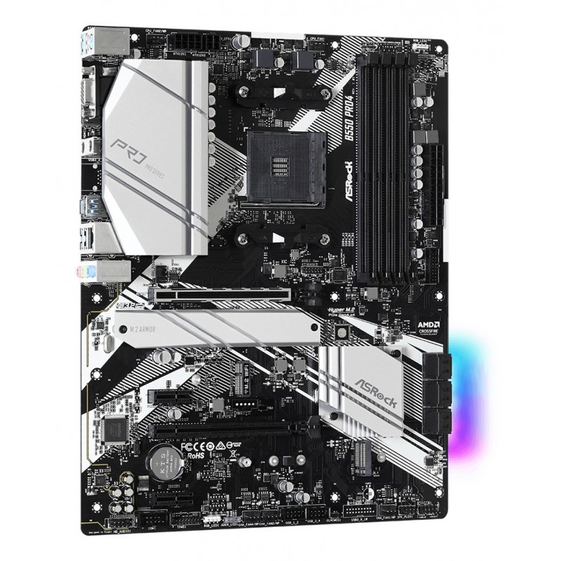 Asrock B550 Pro4. Fabricant de processeur: AMD, Socket de processeur (réceptable de processeur): Emplacement AM4, Processeurs compatibles: AMD Ryzen 3000 Series. Types de mémoire pris en charge: DDR4-SDRAM, Mémoire interne maximale: 128 Go, Type de support (slot): DIMM. Interfaces de lecteur de stockage prises en charge: M.2, SATA III, Types de lecteurs de stockage pris en charge: HDD & SSD, Niveaux RAID: 0, 1, 10. Technologie de Traitement en parallèle: CrossFireX, Quad-GPU CrossFireX. Type d'interface Ethernet: Gigabit Ethernet, Contrôleur de réseau local (LAN): Realtek RTL8111H