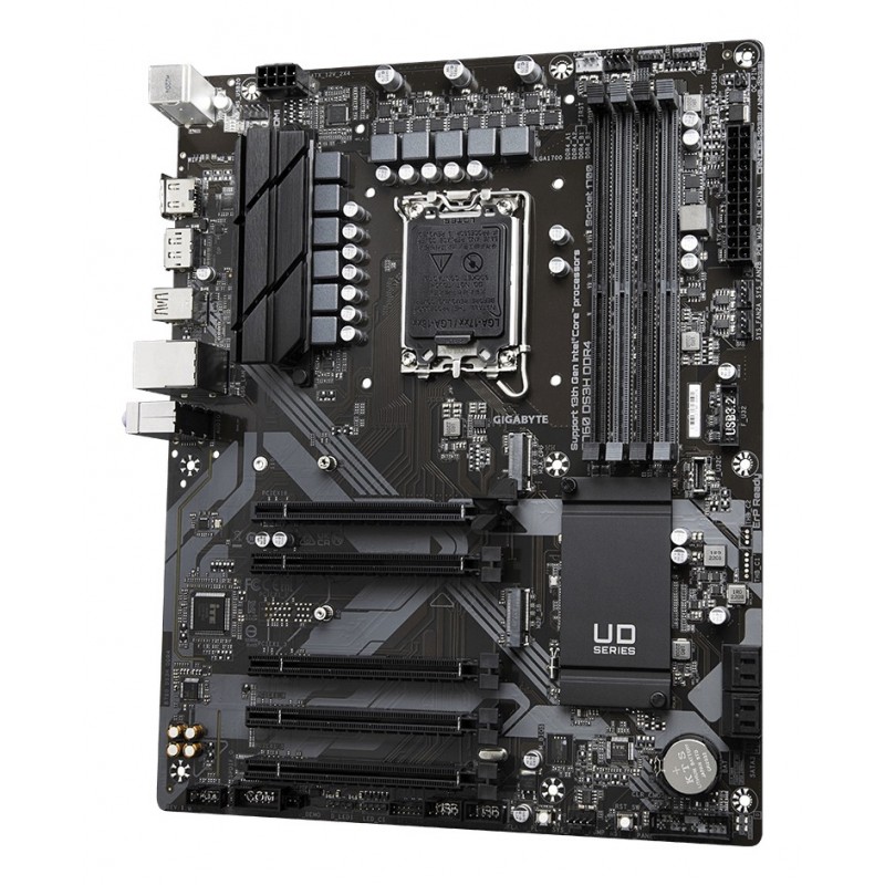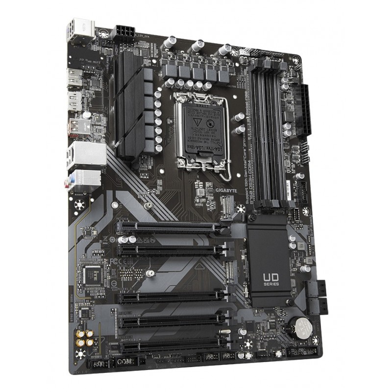GIGABYTE B760 DS3H DDR4 Carte Mère - Prend en charge les processeurs Intel Core 14e génération, VRM numérique 18+2+1 phases, jusqu'à 5333MHz DDR4 (OC), 2xPCIe 4.0 M.2, LAN GbE, USB 3.2 Gen 2. Fabricant de processeur: Intel, Socket de processeur (réceptable de processeur): LGA 1700, Processeurs compatibles: Intel® Celeron®, Intel® Core™ i3, Intel® Core™ i5, Intel® Core™ i7, Intel® Core™ i9,.... Types de mémoire pris en charge: DDR4-SDRAM, Mémoire interne maximale: 128 Go, Type de support (slot): DIMM. Interfaces de lecteur de stockage prises en charge: M.2, PCI Express 4.0, SATA III, Types de lecteurs de stockage pris en charge: HDD & SSD, Niveaux RAID: 0, 1, 5, 10. Résolution maximale: 4096 x 2304 pixels. Connecteur USB: USB Type-A, USB Type-C