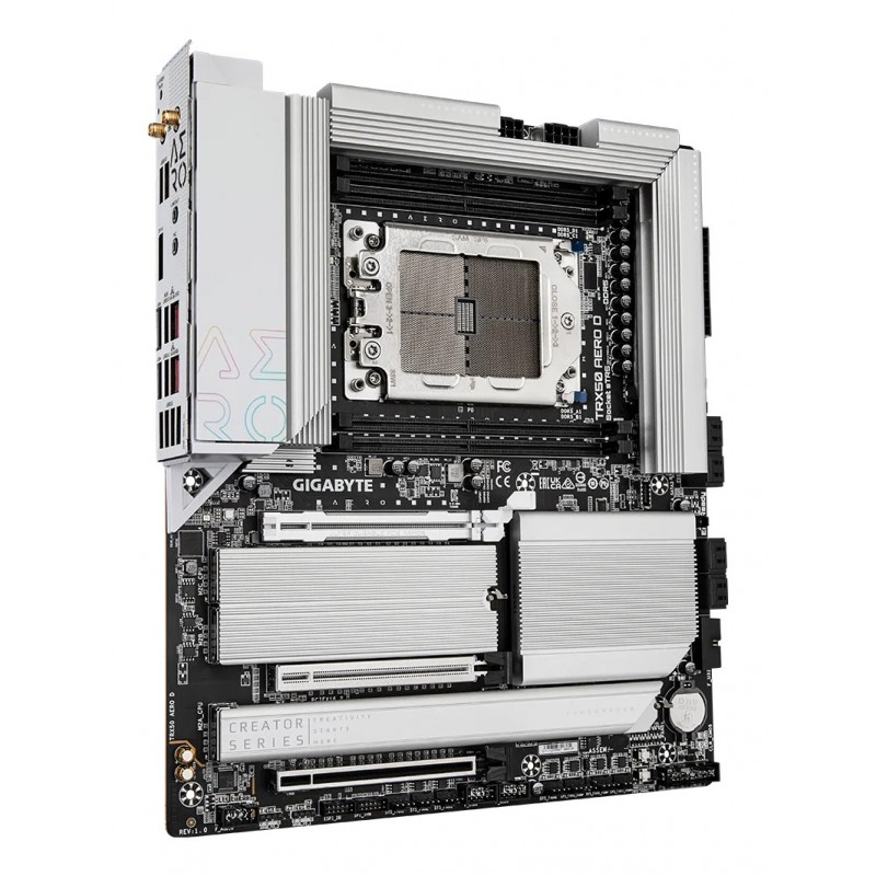 GIGABYTE TRX50 AERO D Carte mère - Compatible avec AMD Ryzen Threadripper 9000 Series CPUs, 16+8+4 Phases Digital VRM, up to 7800MHz DDR5 (OC), 3xPCIe 5.0 + 1xPCIe 4.0 M.2, Wi-Fi 7, 10GbE LAN, USB4. Fabricant de processeur: AMD, Socket de processeur (réceptable de processeur): Socket sTR5, Processeurs compatibles: AMD Ryzen Threadripper 1000 Series. Types de mémoire pris en charge: DDR5-SDRAM, Mémoire interne maximale: 1 To, Type de support (slot): DIMM. Interfaces de lecteur de stockage prises en charge: M.2, SATA, Types de lecteurs de stockage pris en charge: SSD, Niveaux RAID: 0, 1, 10. Type d'interface Ethernet: 10 Gigabit Ethernet, Norme Wi-Fi: Wi-Fi 7 (802.11be), Standards wifi: 802.11a, 802.11b, 802.11g, Wi-Fi 4 (802.11n), Wi-Fi 5 (802.11ac), Wi-Fi 6 (802.11ax), Wi-Fi 7.... composant pour: PC, Elément de forme de carte mère: ATX étendu, famille de composant de produits: AMD