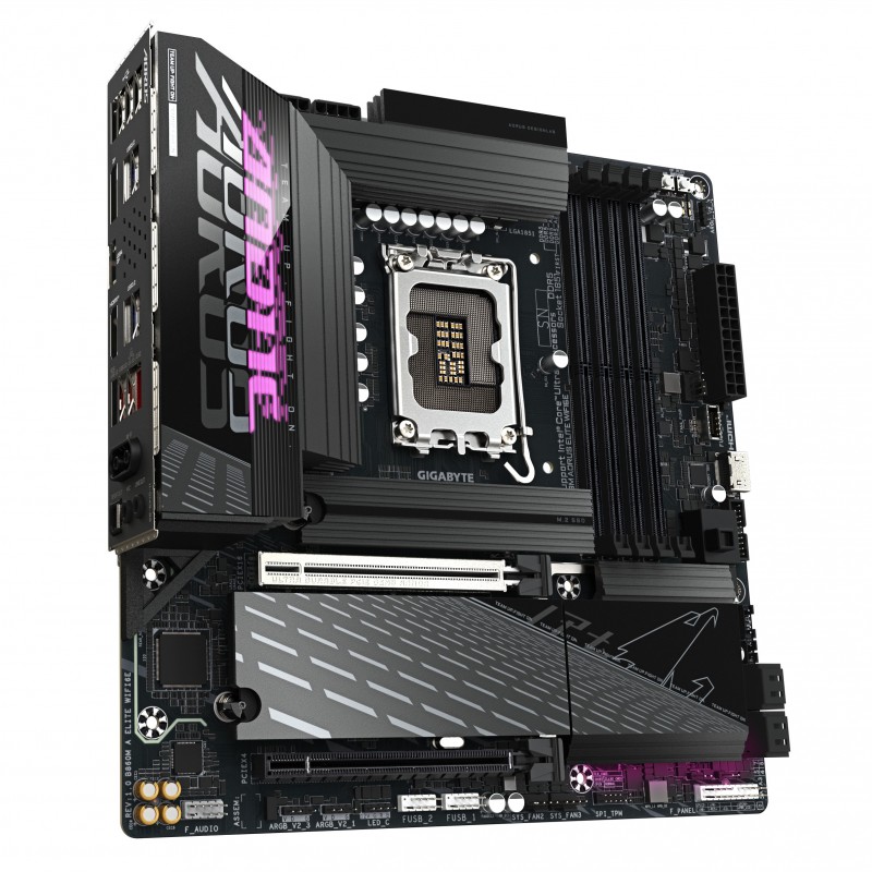 GIGABYTE B860M AORUS ELITE WIFI6E Carte mère - Processeurs Intel Core Ultra, VRM 12+1+2+1 phases, jusqu'à 9200MHz DDR5, 1xPCIe 5.0 + 2xPCIe 4.0 M.2, LAN 2,5 GbE, WIFI 6E, Thunderbolt. Fabricant de processeur: Intel, Socket de processeur (réceptable de processeur): LGA 1851 (Socket V1), Processeurs compatibles: Intel Core Ultra (série 1), Intel Core Ultra (Series 2). Types de mémoire pris en charge: DDR5-SDRAM, Mémoire interne maximale: 256 Go, Type de support (slot): DIMM. Interfaces de lecteur de stockage prises en charge: M.2, SATA III, Types de lecteurs de stockage pris en charge: HDD & SSD, Niveaux RAID: 0, 1, 5, 10. Résolution maximale: 4096 x 2160 pixels. Type d'interface Ethernet: 2.5 Gigabit Ethernet, Contrôleur de réseau local (LAN): Realtek RTL8125, Norme Wi-Fi: Wi-Fi 6E (802.11ax)