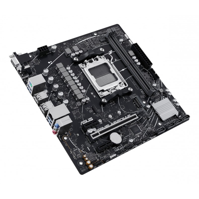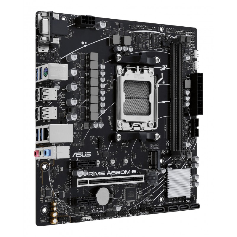 ASUS PRIME A620M-E-CSM. Fabricant de processeur: AMD, Socket de processeur (réceptable de processeur): Emplacement AM5, Processeurs compatibles: AMD Ryzen 7000 Series. Types de mémoire pris en charge: DDR5-SDRAM, Mémoire interne maximale: 96 Go, Type de support (slot): DIMM. Interfaces de lecteur de stockage prises en charge: M.2, SATA III, Types de lecteurs de stockage pris en charge: HDD & SSD, Niveaux RAID: 0, 1, 10. Type d'interface Ethernet: Gigabit Ethernet. composant pour: PC, Elément de forme de carte mère: micro ATX, famille de composant de produits: AMD