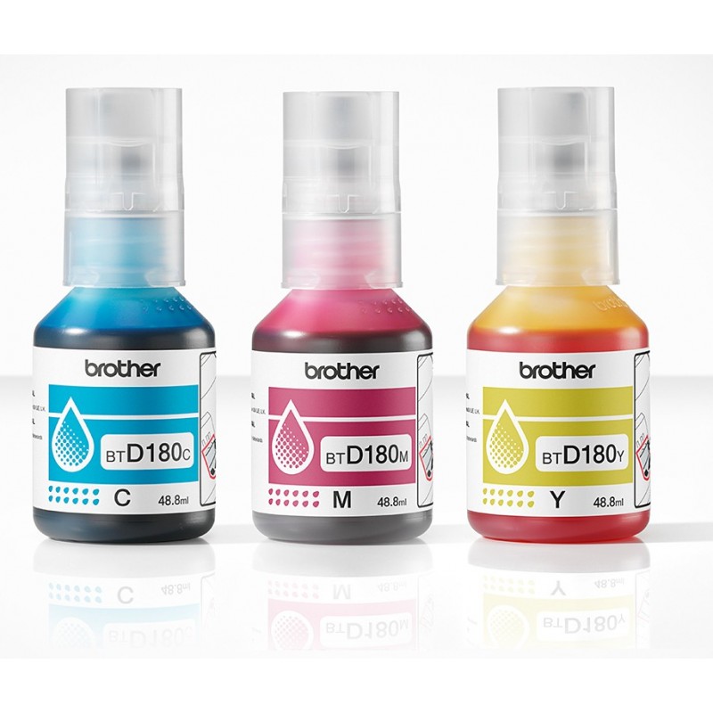 • Brother BTD180CLVAL Bouteilles d'encre couleur multipack | 3 couleurs, Original, Cyan, Magenta, Jaune, Brother, DCP-T580DW, DCP-T583DW, DCP-T780DW, 5000 pages, 3 pièce