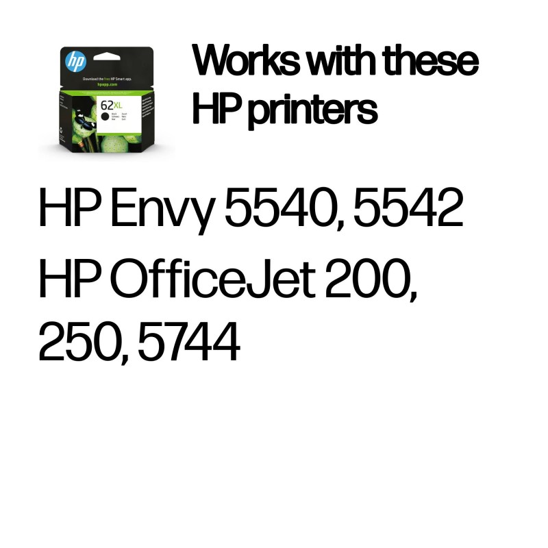 HP 62 ink cartridges work with: HP Envy 5540, 5542, 5544, 5642, 5644 HP OfficeJet 200, 250, 5740, 5742, 5744