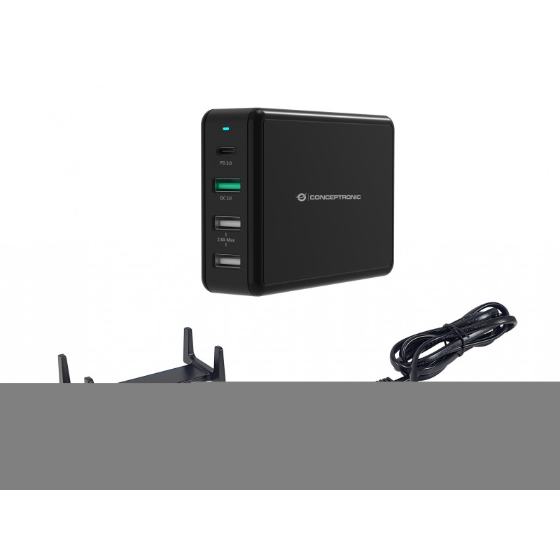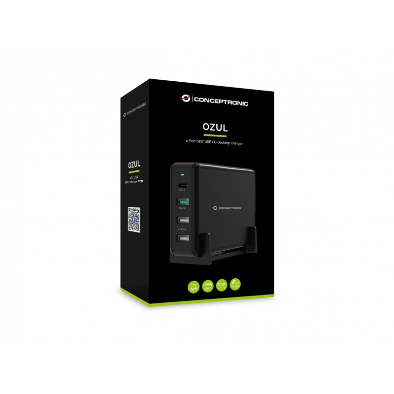 Conceptronic OZUL01B. Type de chargeur: Intérieure, Type de source d'alimentation: Secteur, Compatibilité de chargeur: Universel. Tension de sortie (max): 5 V. Quantité de ports USB de type C: 1, Charge rapide, Dispositifs de protection électrique: Surchauffe, Surcharge, Court-circuit. Couleur du produit: Noir