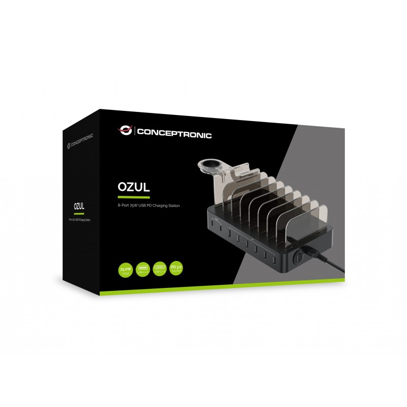 Conceptronic OZUL02B. Type de chargeur: Intérieure, Type de source d'alimentation: Secteur, Compatibilité de chargeur: Universel. Tension de sortie (max): 12 V. Quantité de ports USB de type C: 2. Couleur du produit: Noir