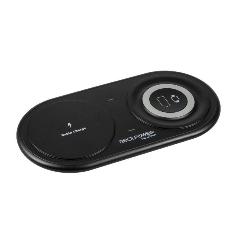 RealPower ChargeAIR Duo. Type de chargeur: Intérieure, Type de source d'alimentation: USB, Compatibilité de chargeur: Smartphone, Smartwatch. Tension d'entrée: 9 V. Couleur du produit: Noir