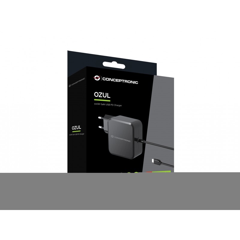 Conceptronic OZUL05BE. Type de chargeur: Intérieure, Type de source d'alimentation: Secteur, Compatibilité de chargeur: Universel. Tension d'entrée: 100 - 240 V, Tension de sortie (max): 20 V. Dispositifs de protection électrique: Surchauffe, Surcharge, Court-circuit. Longueur de câble: 1,8 m, Couleur du produit: Noir