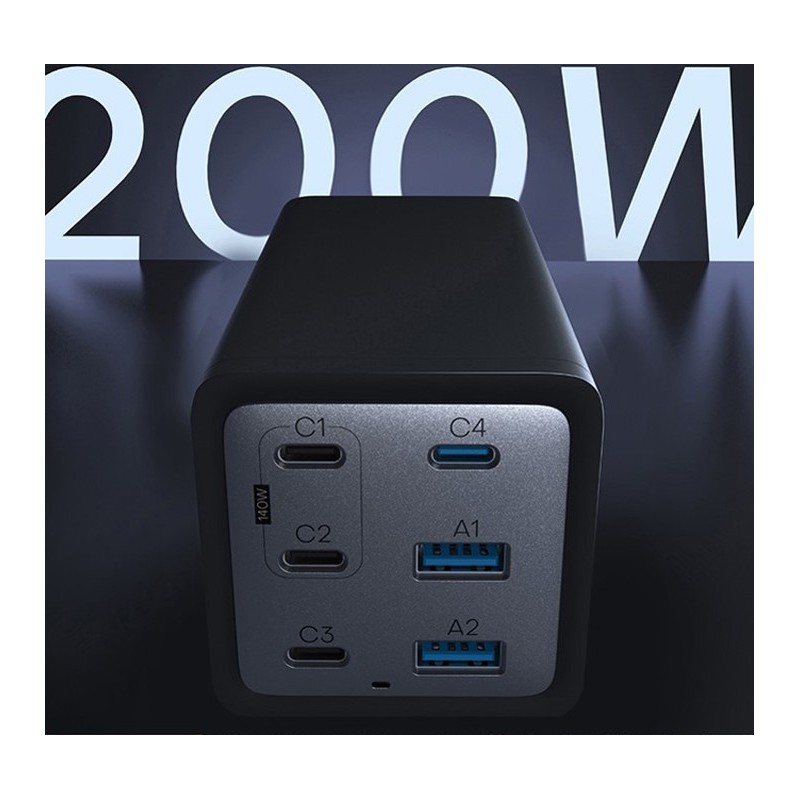 Conceptronic OZUL06BE. Type de chargeur: Intérieure, Type de source d'alimentation: Secteur, Compatibilité de chargeur: Universel. Tension d'entrée: 100 - 240 V, Tension de sortie (max): 55 V. Quantité de ports USB de type C: 4, Charge rapide, Dispositifs de protection électrique: Surchauffe, Surcharge, Court-circuit. Couleur du produit: Noir