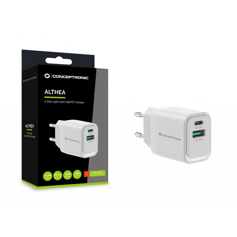 La puissance à l'état pur, dans un emballage intelligent : avec notre chargeur GaN II de 67 watts, vous chargez votre smartphone, votre tablette et votre ordinateur portable en un clin d'œil et en toute sécurité - avec un seul chargeur compact. Deux ports USB-C fournissent chacun jusqu'à 67 watts, le port USB-A jusqu'à 22,5 watts - parfait pour alimenter plusieurs appareils en même temps avec une pleine puissance. Que ce soit individuellement ou en combinaison : La répartition intelligente de la puissance veille à ce que vos appareils soient toujours chargés de manière optimale. Grâce à la technologie moderne GaN II (nitrure de gallium), le chargeur est particulièrement efficace, compact et durable. Le boîtier en matériau PCR (post-consumer recycling) recyclé à 98% et l'emballage 100% sans plastique préservent l'environnement sans faire de compromis sur la qualité ou la sécurité. Utilisation universelle pour smartphone, tablette, ordinateur portable & Co. - votre nouveau chargeur polyvalent pour un chargement rapide, durable et sûr.