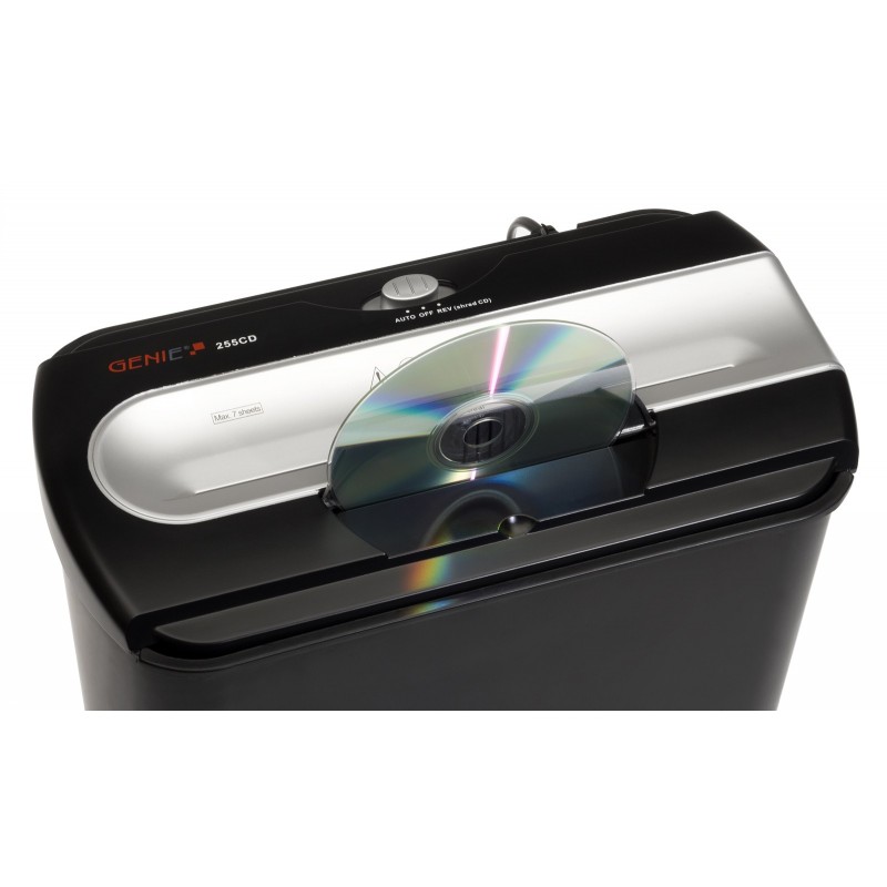 Genie 255 CD. Type de déchiquetage: Découpage en bandes, Fente de déchiquetage: 22 cm, Taille de déchiquetage: 7 mm. Tension d'entrée AC: 220 - 240 V, Fréquence d'entrée AC: 50 Hz, Actuel: 0,5 A. Certification: CE. Largeur: 300 mm, Profondeur: 185 mm, Hauteur: 320 mm