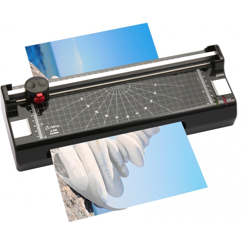 Olympia A 240 Combo. Largeur maximale de plastification: 23 cm, Type: Laminoir à froid/à chaud, Vitesse de plastification: 250 mm/min. Consommation électrique typique: 265 W, Tension d'entrée AC: 230 V, Fréquence d'entrée AC: 50 Hz. Largeur: 370 mm, Profondeur: 128 mm, Hauteur: 95 mm