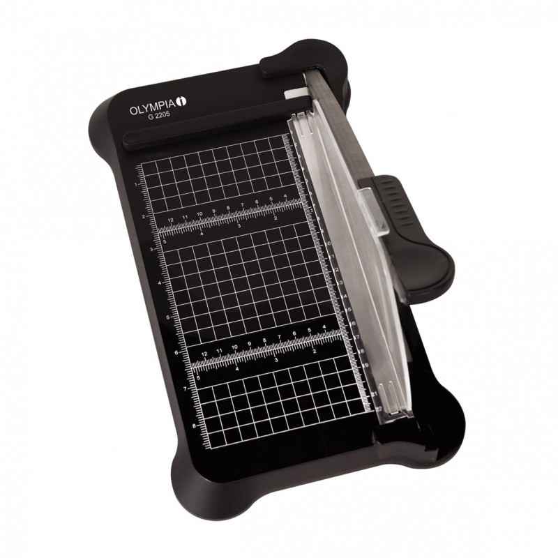 Olympia G 2205. Capacité de découpe: 1 feuilles, Longueur de découpe: 22 cm, Format: A5. Poids: 520 g. Dimensions (LxPxH): 323 x 194 x 164 mm