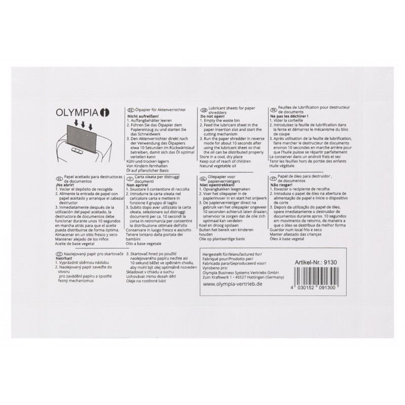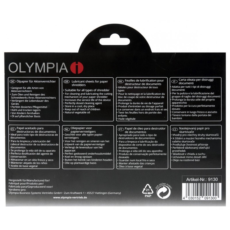Olympia 9130. Quantité: 12 pièce(s). Largeur du colis: 240 mm, Profondeur du colis: 5 mm, Hauteur du colis: 163 mm