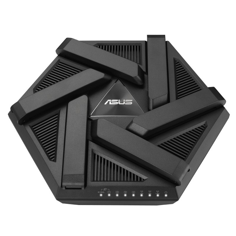 ASUS RT-AXE7800. Type de connexion WAN: RJ-45. Bande Wi-Fi: Tri-bande (2,4 GHz / 5 GHz / 6 GHz), Norme Wi-Fi: Wi-Fi 6E (802.11ax), Débit de transfert des données WLAN (max): 4804 Mbit/s. LAN Ethernet : taux de transfert des données: 10,100,1000 Mbit/s, Technologie de cablâge: 10/100/1000Base-T(X), Serveur VPN: IPSec, OVPN, PPTP. Algorithme de sécurité soutenu: SSH, WPA, WPA-Enterprise, WPA2, WPA2-Enterprise, WPA3, WPS, Fonction NAT: PPTP, L2TP, IPSec, RTSP, H.323, SIP Passthrough, PPPoE relay. Type de produit: Routeur, Couleur du produit: Noir, Voyants: LAN, Énergie, WAN