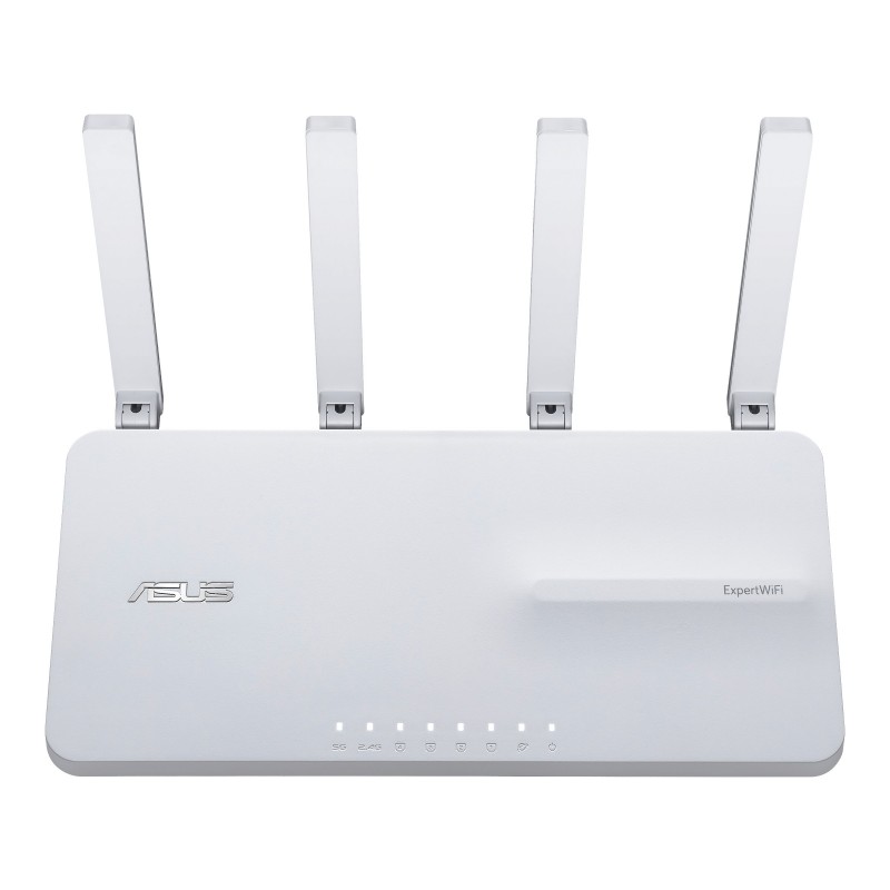 ASUS EBR63 – Expert WiFi. Type de connexion WAN: RJ-45. Bande Wi-Fi: Bi-bande (2,4 GHz / 5 GHz), Norme Wi-Fi: Wi-Fi 6 (802.11ax), Débit de transfert des données WLAN (max): 2402 Mbit/s. Type d'interface LAN Ethernet: Gigabit Ethernet, LAN Ethernet : taux de transfert des données: 10,100,1000 Mbit/s, Technologie de cablâge: 10/100/1000Base-T(X). Algorithme de sécurité soutenu: SSH, WPS. Type de produit: Routeur, Couleur du produit: Blanc, Voyants: Activité, LAN, Énergie, WAN
