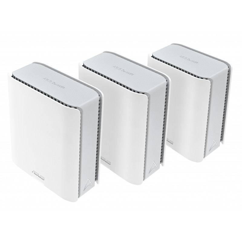 ASUS ZenWiFi BT8. Couleur du produit: Blanc, Type d'antenne: Interne, Type de produit: Routeur maillé. Bande Wi-Fi: Tri-bande (2,4 GHz / 5 GHz / 6 GHz), Norme Wi-Fi: Wi-Fi 7 (802.11be), Débit de transfert des données WLAN (max): 8643 Mbit/s. Mémoire interne: 1000 Mo, Mémoire flash: 128 Mo, Pare-feu de sécurité: Firewall. Tension d'entrée AC: 110 - 240 V, Fréquence d'entrée AC: 50 - 60 Hz, Tension sortie de l'adaptateur secteur: 12 V. Largeur: 159 mm, Profondeur: 72 mm, Hauteur: 186 mm