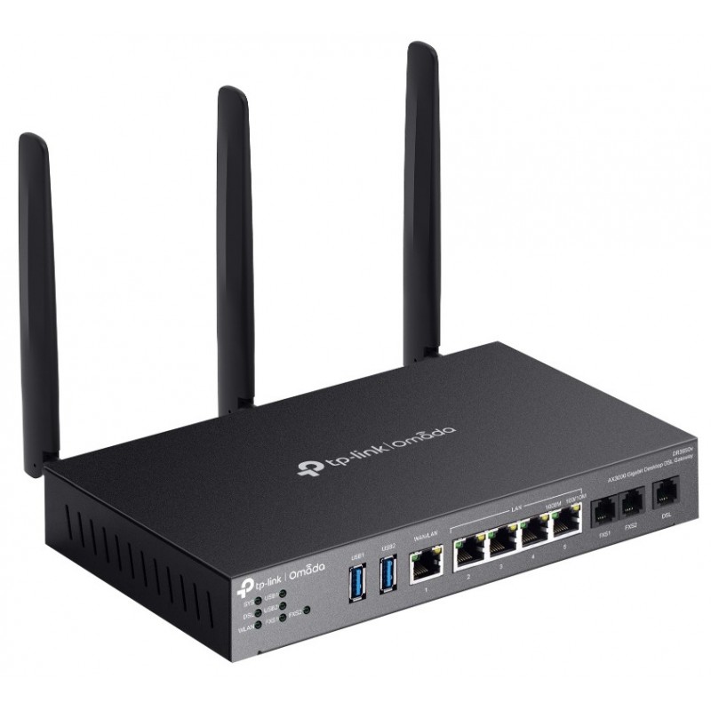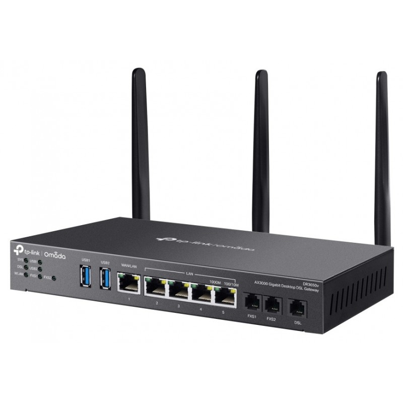 TP-Link Omada DR3220v-4G. Type de connexion WAN: RJ-45. Bande Wi-Fi: Bi-bande (2,4 GHz / 5 GHz), Débit de transfert des données WLAN (max): 2402 Mbit/s, Standards wifi: 802.11a, 802.11b, 802.11g, Wi-Fi 4 (802.11n), Wi-Fi 5 (802.11ac), Wi-Fi 6 (802.11ax). Type d'interface LAN Ethernet: Gigabit Ethernet, LAN Ethernet : taux de transfert des données: 10,100,1000 Mbit/s, Technologie de cablâge: 10/100/1000Base-T(X). Algorithme de sécurité soutenu: WPA-Enterprise, WPA-Personal, WPA2-Enterprise, WPA2-Personal, WPA3-Enterprise, WPA3-Personal. Codecs vocaux: G.711a, G.711ulaw, G.722, G.726, G.729ab