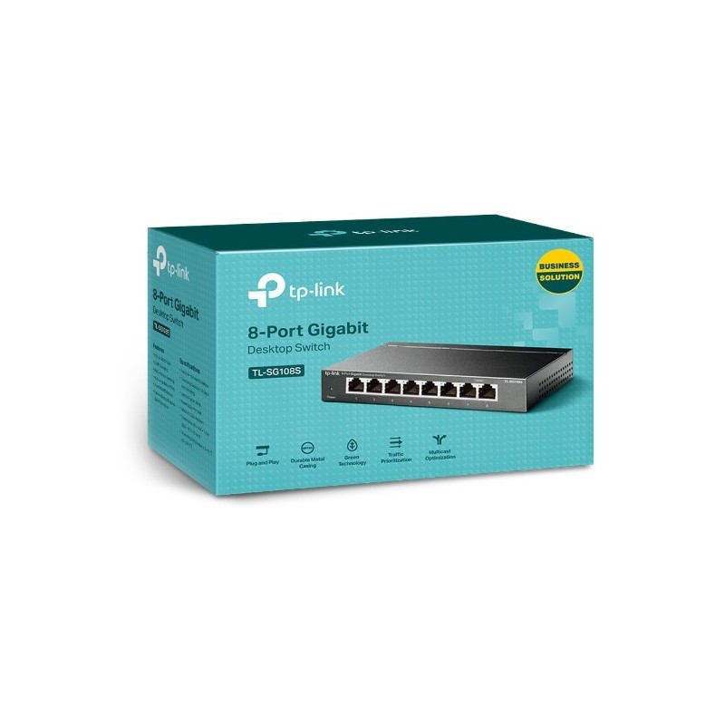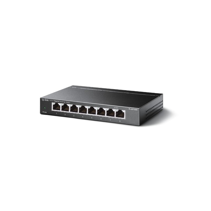 TP-Link TL-SG108S(UN). Type de commutateur: Non-géré. Type de port Ethernet RJ-45 de commutation de base: Gigabit Ethernet (10/100/1000), Quantité de ports Ethernet RJ-45 de commutation de base: 8. Full duplex. Répertoire MAC: 4000 entrées, Capacité de commutation: 16 Gbit/s. Standards réseau: IEEE 802.1p, IEEE 802.3ab, IEEE 802.3i, IEEE 802.3u, IEEE 802.3x. Format: Bureau