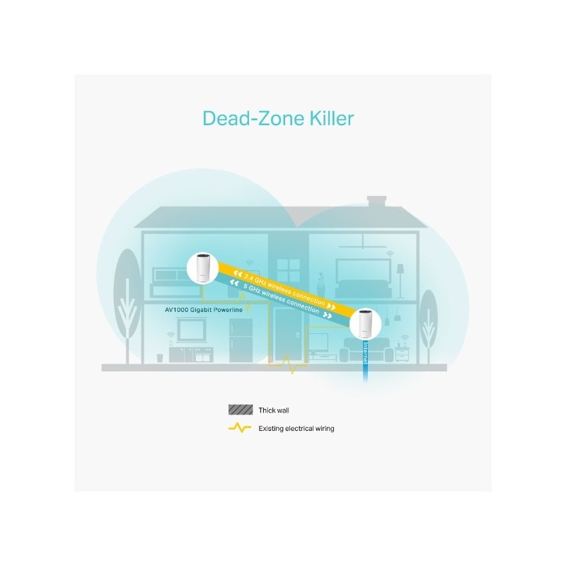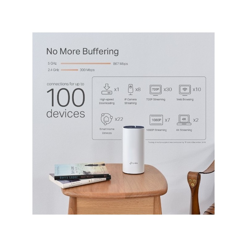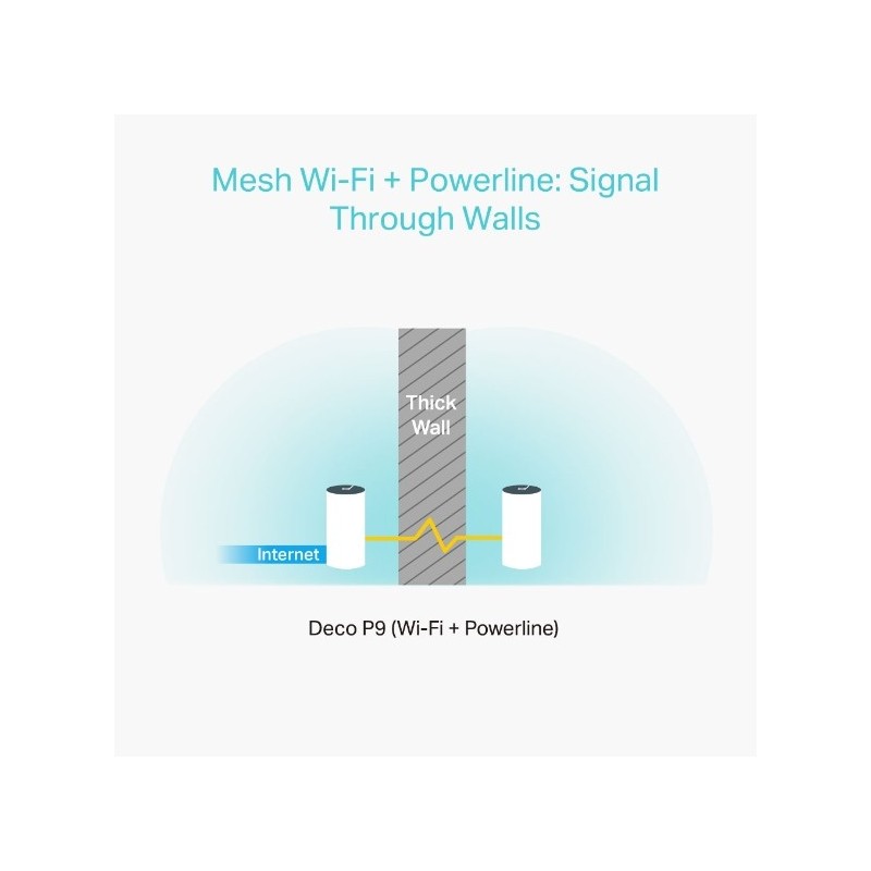TP-Link Deco P9 (2-pack). Couleur du produit: Blanc, Type d'antenne: Interne, Type de produit: Système maillé. Bande Wi-Fi: Bi-bande (2,4 GHz / 5 GHz), Norme Wi-Fi: Wi-Fi 5 (802.11ac), Débit de transfert des données WLAN (max): 1167 Mbit/s. Pare-feu de sécurité: SPI. Tension d'entrée AC: 100 - 240 V, Courant d'entrée de l'adaptateur CA: 0,5 A, Fréquence d'entrée AC: 50 - 60 Hz. Certificats de conformité: RoHS, CE, Certification: FCC, IC, NCC, BSMI, IDA, RCM, JPA, JRF, VCCI, KC