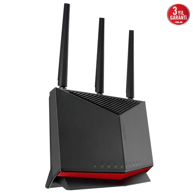 ASUS RT-BE86U. Type de connexion WAN: RJ-45. Bande Wi-Fi: Bi-bande (2,4 GHz / 5 GHz), Norme Wi-Fi: Wi-Fi 7 (802.11be), Débit de transfert des données WLAN (max): 5764 Mbit/s. Type d'interface LAN Ethernet: 10 Gigabit Ethernet, LAN Ethernet : taux de transfert des données: 10,100,1000,2500,10000 Mbit/s, Standards réseau: IEEE 802.11a, IEEE 802.11ac, IEEE 802.11ax, IEEE 802.11b, IEEE 802.11be, IEEE 802.11g, IEEE 802.11n. Algorithme de sécurité soutenu: WPA-Personal, WPA2-Enterprise, WPA2-Personal, WPA3-Enterprise, WPA3-Personal, WPS, Répertoire MAC: 64 entrées, Fonction NAT: PPTP Pass-Through L2TP Pass-Through IPSec Pass-Through RTSP Pass-Through H.323 Pass-Through SIP.... Type de produit: Routeur, Couleur du produit: Noir, Voyants: LAN, Énergie, WAN